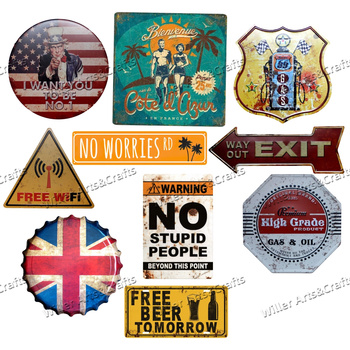 Toptan özel Vintage Metal el sanatları Retro teneke plaka işareti ev Pub duvar asılı düz baskı plak kahve bira kola Bar dekor
